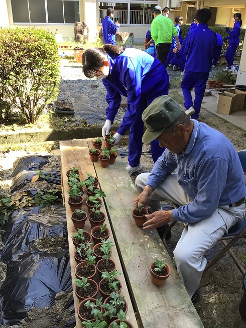 5月21日(火曜) 菊づくりの先生方をお招きし、菊の移植を行いました。 「茎を折らないように丁寧に植えるのが難しかったです。」(3A生徒) 「土にいろいろな種類の栄養を混ぜていることが分かりました。」(3B生徒) 菊の苗がポットの中でしっかりと根を張っている様子に、一安心しながら、 次は鉢植えの中で大きくなって欲しいと願いを込めて移植することができました。 カテゴリー: 3年部