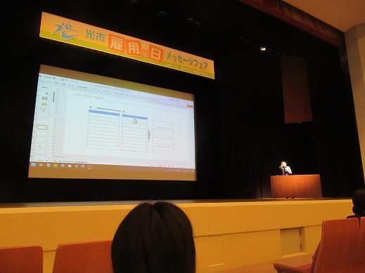 2年生が光市民ホールで行われた「雇用の日 メッセージフェア」に参加しました。