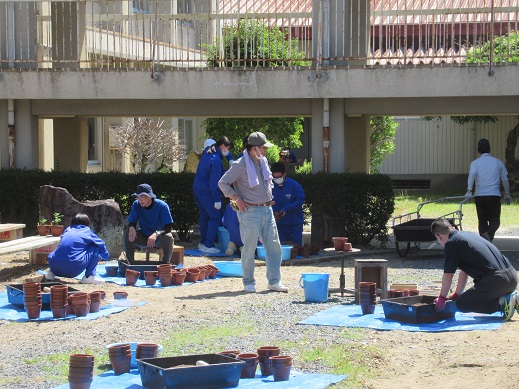 今回の土には籾(もみ)が加わりました。菊づくりの先生方によるスペシャルブレンドです。