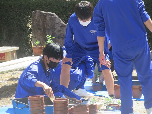 3年生は「要領が良い。」と褒めていただきながら、楽しそうに植え替えを完了することができました。