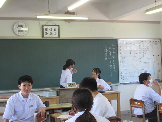6月12日(水曜) 今月末に開催される生徒総会に向けて、 より良い学校生活となるように各クラスで改善点や行事の企画を話し合っています。 今日は第1回目の話し合いでした。 学級委員が中心となって話し合いを進め、全校の各クラスで活発な話し合いが行われました。 本日のテーマは「みんなが楽しい学校へ みんなで体を動かそう」でした。 カテゴリー: 活動紹介生徒会活動1年部2年部3年部