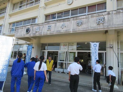 6月14日(金曜) 今月も、はじけるSMILEあいさつ運動が行われました。 有志の生徒が、岩田駅前、三輪小学校、岩田小学校、束荷小学校、塩田小学校の5か所に行き、 あいさつ運動をしました。 写真は、塩田小学校でのようすです。 小学生の登校を待つ間、お世話になった小学校の先生方や地域の方々とお話したり、 登校した小学生と気持ちの良いあいさつを交わし合ったりしました。 カテゴリー: やまと学園小学校活動紹介生徒会活動1年部2年部3年部