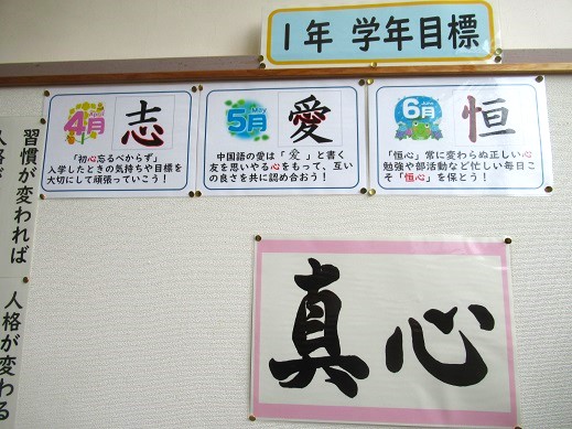 1年生の学年目標は「真心(まごころ)」です。 第3校舎の掲示板には、毎月「心」のこもった掲示物が更新されています。 4月は「志」、5月は「愛」、6月は「恒」のように、 心が使われている漢字を使ったメッセージが貼られたり、 Magokorogram(マゴコログラム)という学年や個人の心のこもった良い瞬間を 伝える写真が貼られたりしています。 みんなで良いところを共有しながら、お互い頑張っています。 カテゴリー: 活動紹介1年部