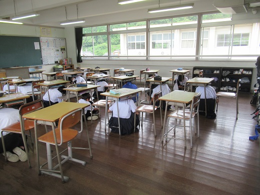 身をかがめて頭を守り、机の下で動かない姿勢をとることができました。