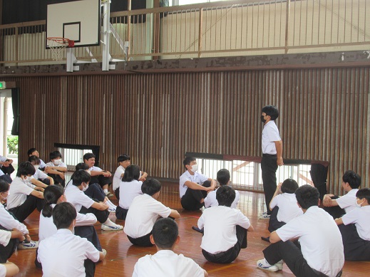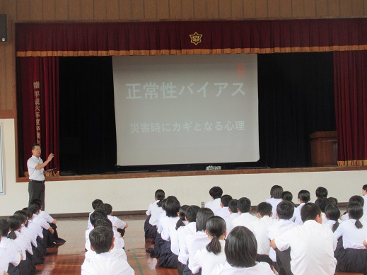 そして、静かに体育館へ移動して、教頭先生から本日の訓練の振り返りと、防災のお話がありました。