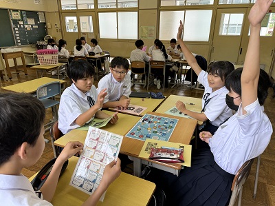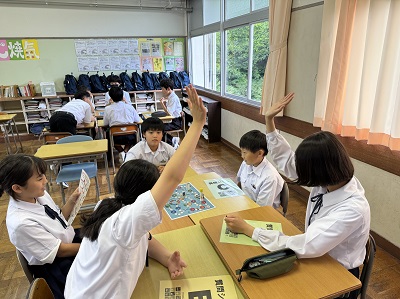 6時間目に1年生がSDGsに関する学習活動として、SDGsすごろくを行いました。
