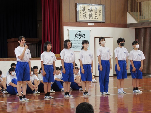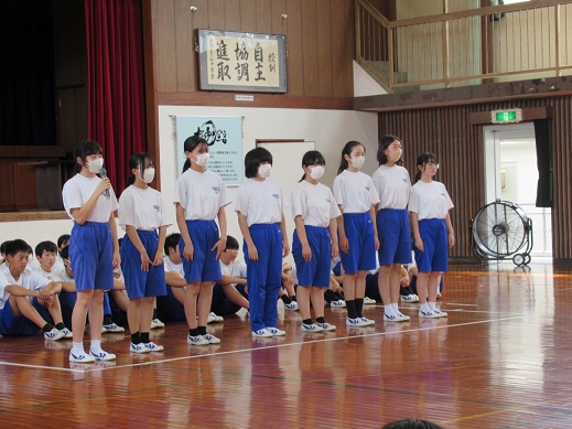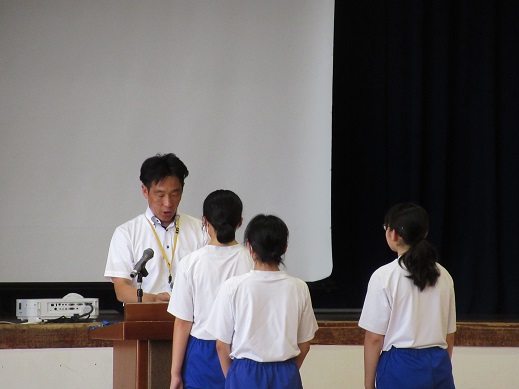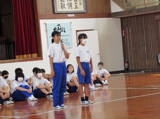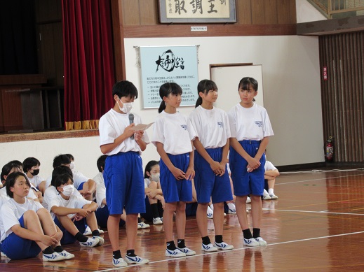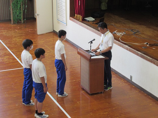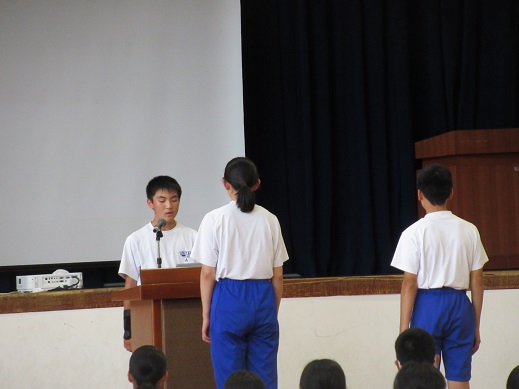 学習委員長からは学習クラスマッチの結果発表があり、1位の3Bと2位の2Aが表彰されました。