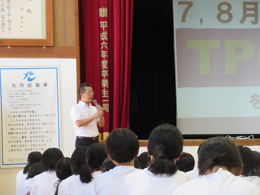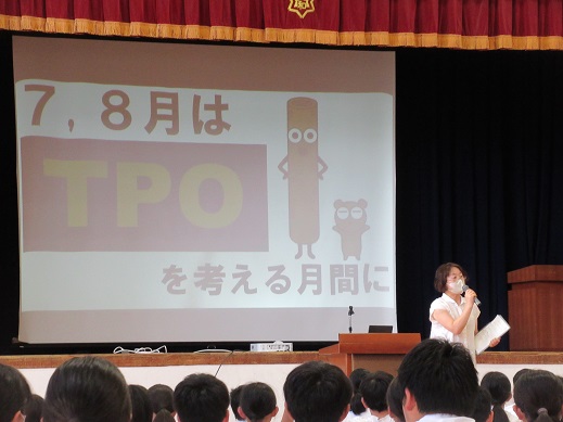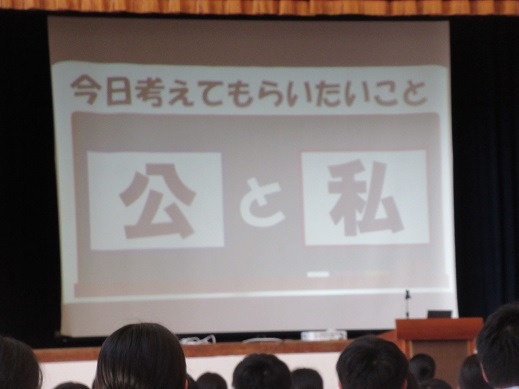 生徒指導主任からは、「公と私」を考え、TPOを大事にした生活を送ろうという話がありました。