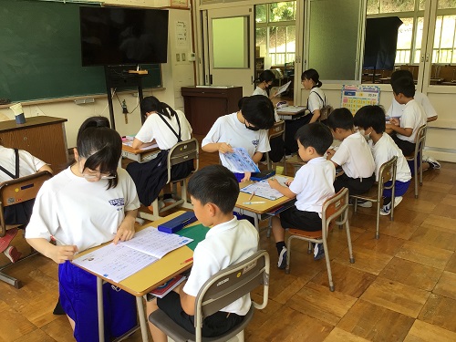 7月23日(火曜) 有志の生徒が、塩田小学校と、三輪小学校へサマースクールボランティアに行きました。 地域の方々と一緒に、小学生の学習をお手伝いしたり、 看板づくりのお手伝いをしたりしました。 参加者の年齢はそれぞれ違いますが、全員がほのぼのと心通わせながら活動する姿がありました。 カテゴリー: やまと学園小中一貫活動紹介CS