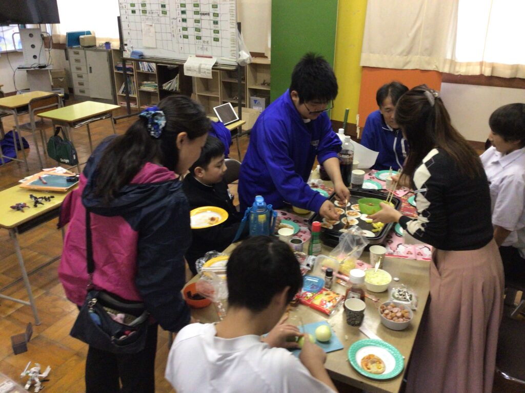 昨日、岩城学級で餃子の皮を利用した「オリジナルピザ」づくりが行われました。今回は、ホットプレートを使った手軽な調理実習です。具材は、コーンや玉ねぎ、ウインナー、チョコレートなど、いろいろなものを持ち寄りました。 「おいしいね!」「これ、食べてみて!」「〇〇先生、どうぞ!」等の声が響き、笑顔溢れる時間となりました。 カテゴリー: 活動紹介
