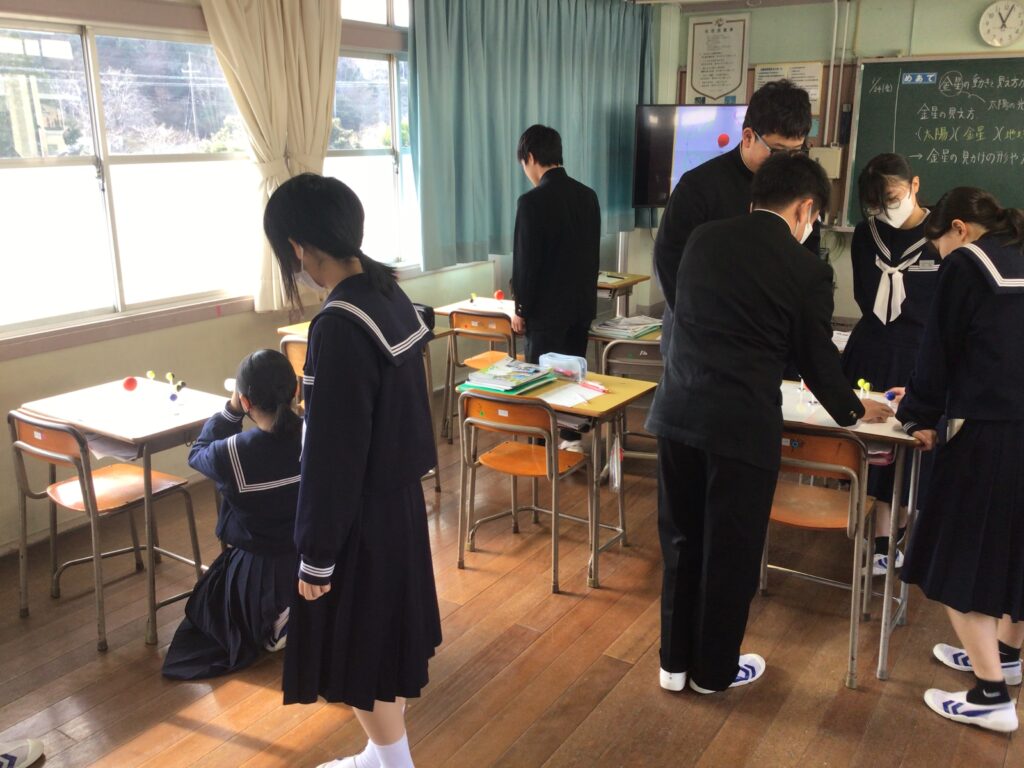 現在、3年生は天体の学習に取り組んでいます。 抽象的な概念であり、知識の定着に時間が必要であることから、教科担任がミニ天体道具を活用しながら授業を展開しています。 そのため、体験的に月の満ち欠けなどを学習することができ、「つまり、そういうことなんだ!」「わかった、嬉しい‼︎」といった、わかる喜びを実感する姿が見られました。 カテゴリー: 活動紹介