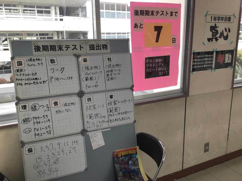 本日から、1•2年生は今年度の学習の集大成となる学年末テスト週間に入ります。試験は20日(木)、21日(金)の2日間を予定しています。 なお、3年生は中学校最後の定期テストとなる学年末テスト日であり、校内は学習モードに包み込まれています。 カテゴリー: 活動紹介