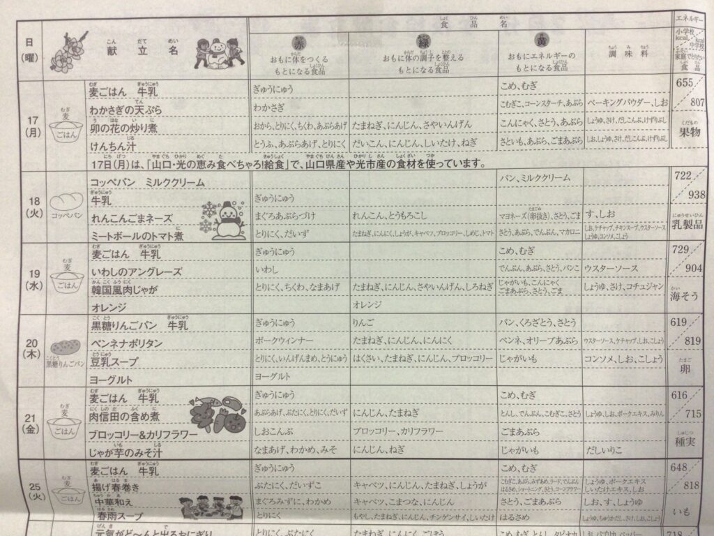本日は、「山口・光の恵みたべちゃろ!給食」の日です。