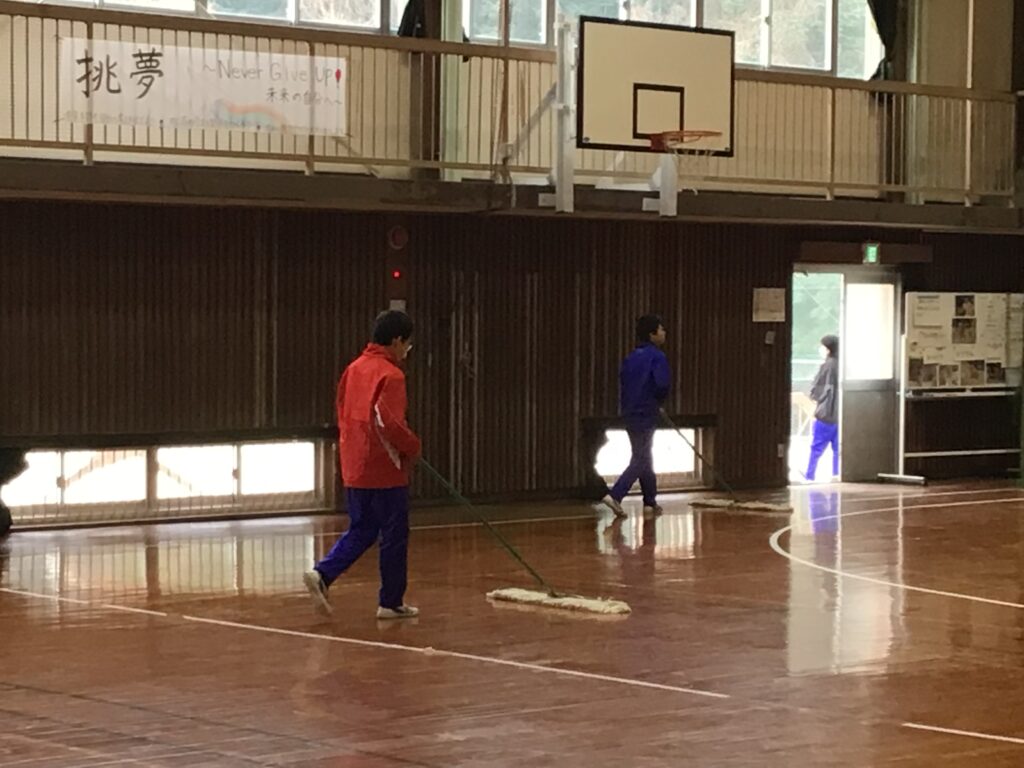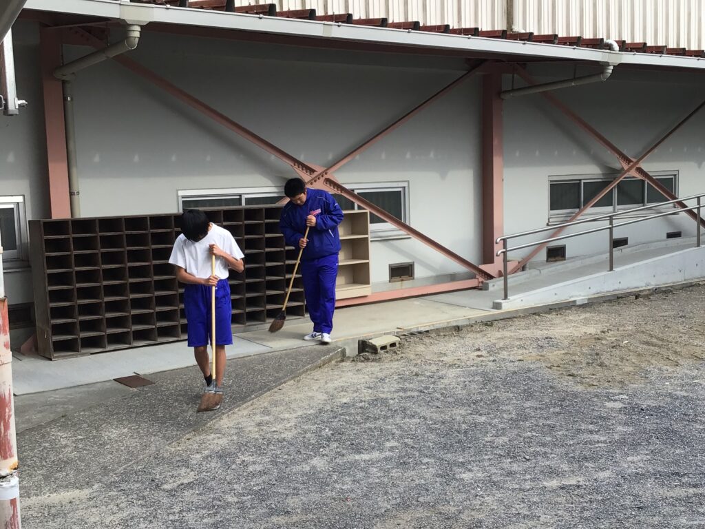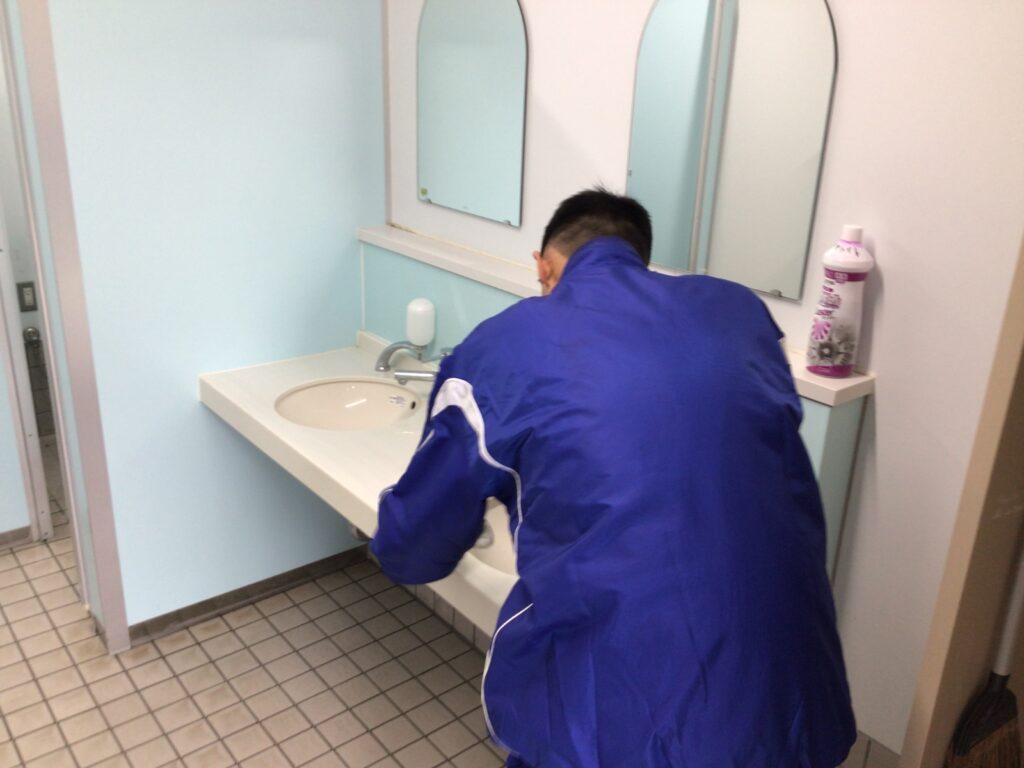 年度末を控え、感謝の気持ちで黙々と清掃活動に取り組む姿が見られます。