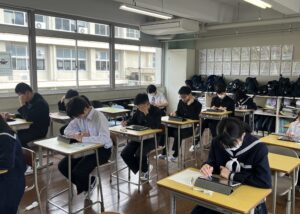 4月16日(水)、全国的に子どもたちの学力状況を把握する全国学力・学習状況調査が行われ、今日は理科と質問紙がありました。明日17日(木)にかけて、対象の3年生がCBT(Computer Based Testing)により国数理を受検します。全国学力・学習状況調査の結果は、後日生徒一人一人に提供されます。 カテゴリー: 活動紹介3年部