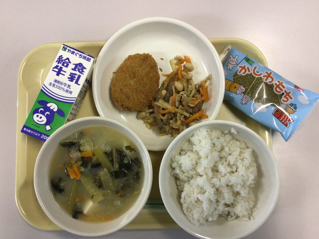 連休明けの今日の給食は、ご覧の通りとなっています。5日の端午の節句に因んで、柏餅が準備されるなど、季節感のあるメニューとなっています。