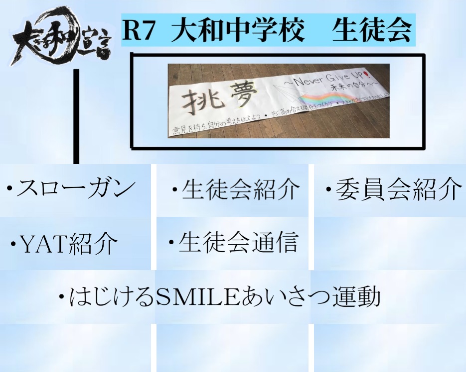 5月7日(水曜) 生徒会ページに「生徒会通信」と「はじけるSMILEあいさつ運動」を追加しました。 はじけるSMILEあいさつ運動は、今年度より開始時刻が変更になっています。 詳しくはページをクリックしてご覧ください。 また、新しいポスターも作成中です。 カテゴリー: 活動紹介生徒会活動CS