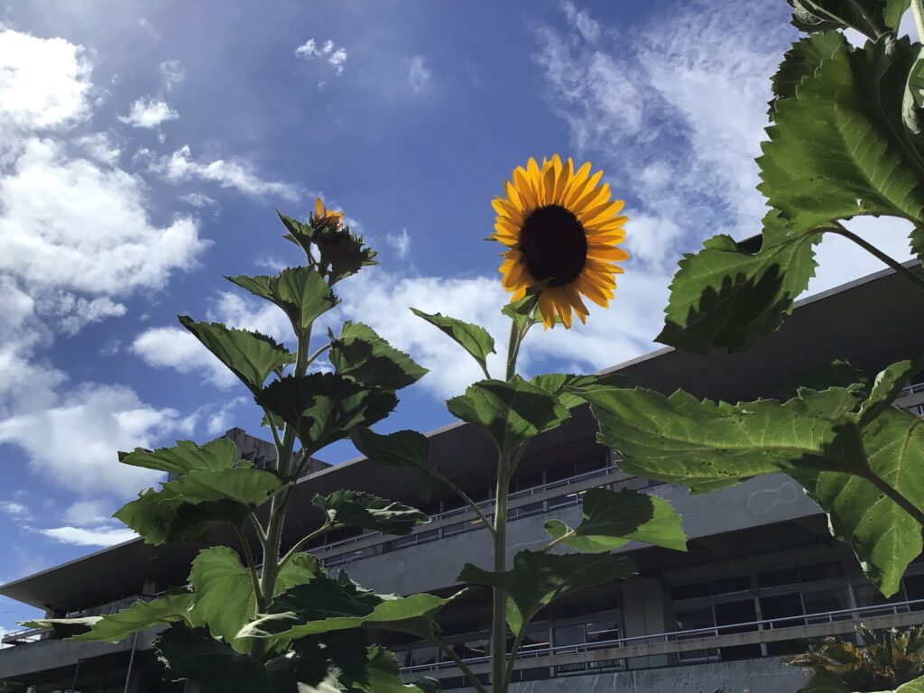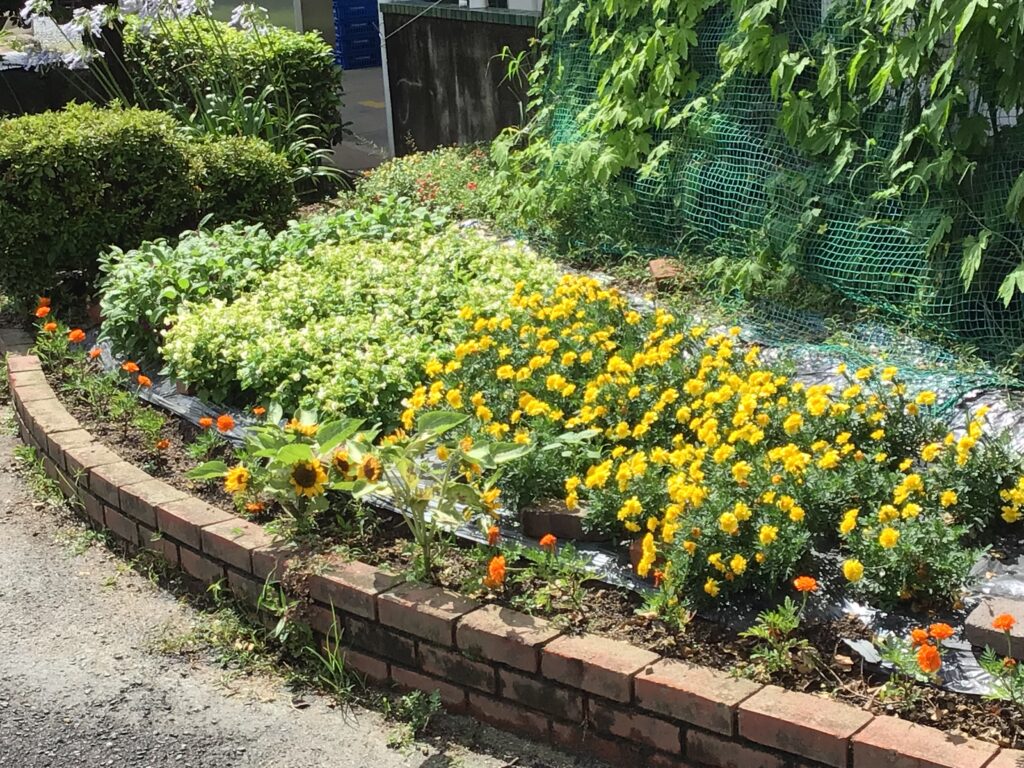 校務技師さんが連日、暑い日差しの中で環境整備をしてくださっています。 お陰をもちましてご覧の通り、校内のメインストリートにはグリーンカーテンや綺麗な花々が咲いています! 生徒、教職員、来校者の方々にとっても「心温まる・癒しの空間」です。 なお、体育祭に向けて、教職員が連携しながらグランド周辺の草刈りを順調に進めています。 カテゴリー: 活動紹介