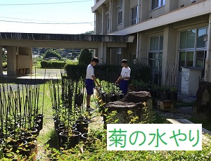 7月22日(火曜) 夏休みが始まっています。 午前中は学校当番による清掃、各部活動、 午後からは体育祭の実行委員、隊係、菊の水やりなど 多くの生徒が登校して、友だちと協力しながら自分の役割を果たす姿がありました。 カテゴリー: 活動紹介