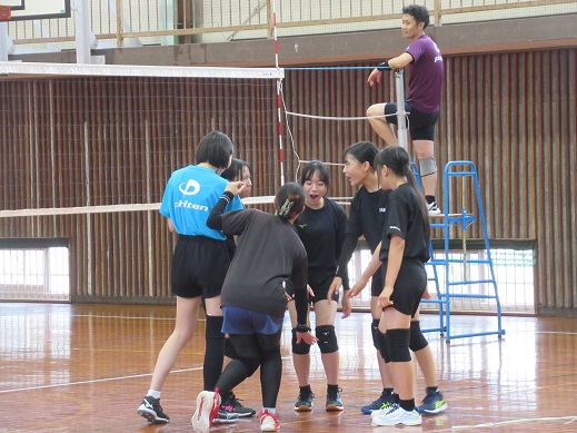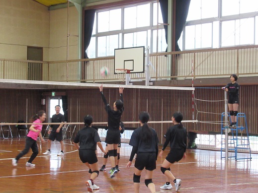 9月23日(火曜) バレーボール部の引退した3年生や保護者の皆様を招いて、 お別れ試合が行われました。 学年対抗や親子対決などを楽しみました。 久しぶりにプレーする3年生の姿や、 経験者が多くかっこいいプレーを見せてくださる保護者の方々の姿に、 大きな歓声が響く、楽しい試合となりました。 カテゴリー: 活動紹介
