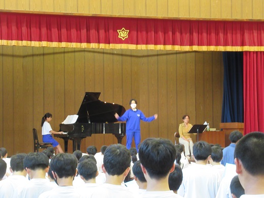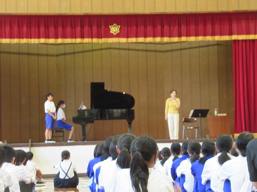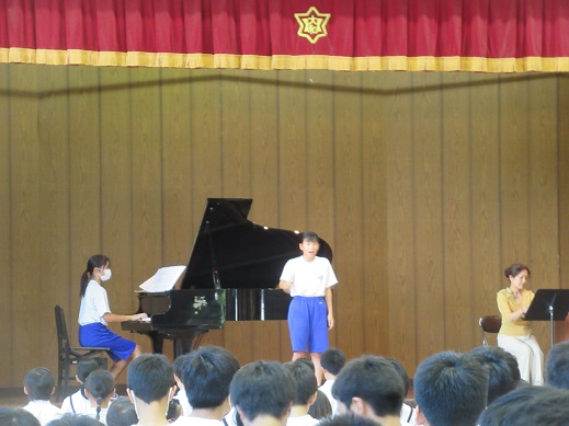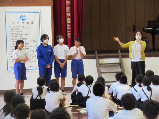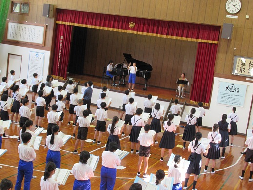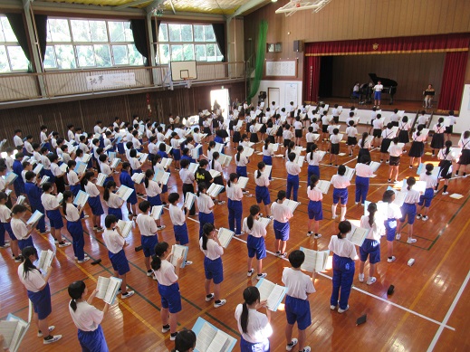 10月1日(水曜) 5時間目に大和小学校の5・6年生と一緒に合唱練習を行いました。 講師に玖珂小学校の佐々木先生をお招きしました。 小学生の明るい歌声に、中学生の歌声が重なって厚みが増していました。 11月の本番に向けて、各校でさらに練習を積み重ねます。 カテゴリー: 活動紹介