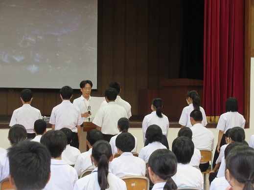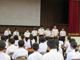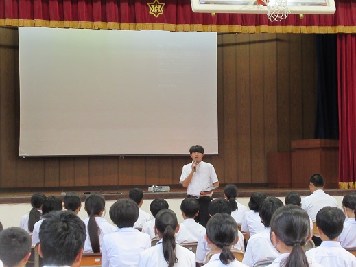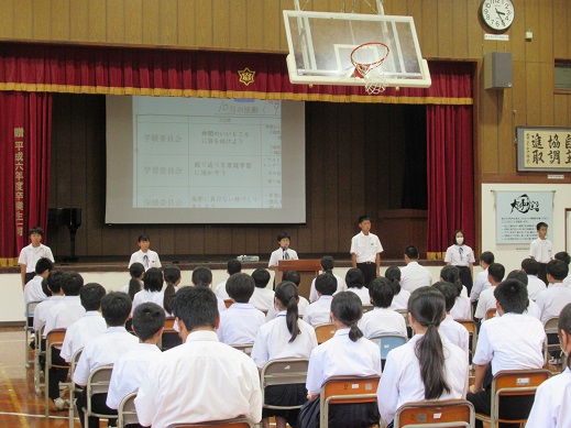 集会では、生徒会副会長から後期を迎える準備の大切さや文化祭で団結力を深め、全力で取り組もうという挨拶がありました。