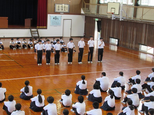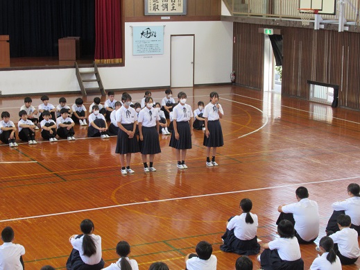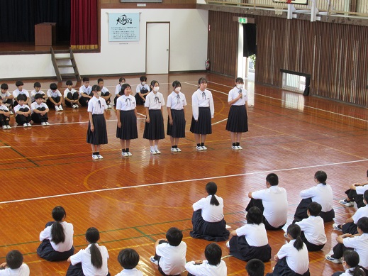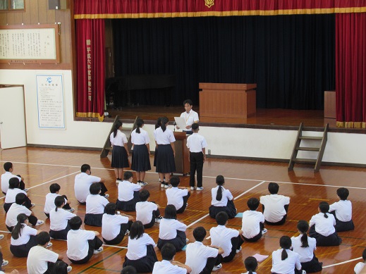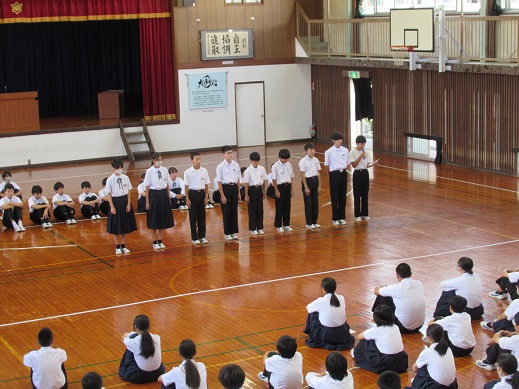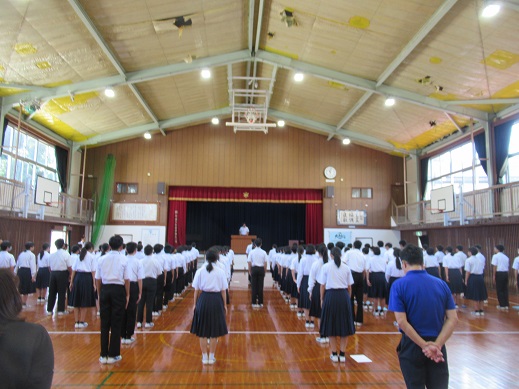 してほしいというメッセージが送られました。最後は、生徒指導主事による校内掲示の大和言葉を引用し、