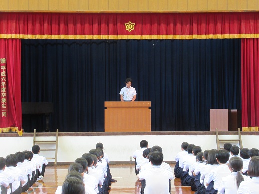ちなんだお話がありました。行事や各学年の取り組み、校長先生が毎月100km走ることに挑戦していること、