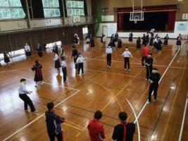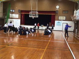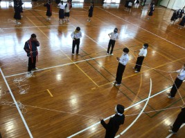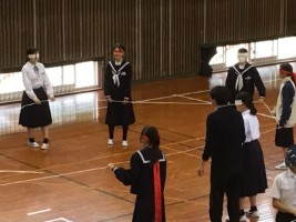11月13日(木) 今月のYAT企画は、ブラインドスクエアでした。 昼休みに体育館に集合した生徒たちは、 目隠しをしてロープを握り、 お題に合った形を作ろうと奮闘しました。 2年A組女子による四角形、 1・2年生男子によるハート型が1位に輝きました。 カテゴリー: 生徒会活動