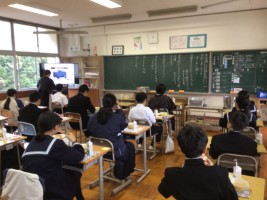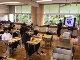 11月13日(木曜) 給食時間に1年生の各クラスにおいて、 養護教諭による保健指導がありました。 インフルエンザの流行を防ぐために、 「手洗い」「マスク」「換気」の大切さを スライドを用いて教えてもらいました。 30秒の石けんを使った手洗い、 不織布など有効な素材によるマスクの着用、 対角線上に開けた窓による換気など、 保健委員を中心に各クラスで対策を行い、 冬本番に備えるための知識を学ぶことができました。 カテゴリー: 活動紹介