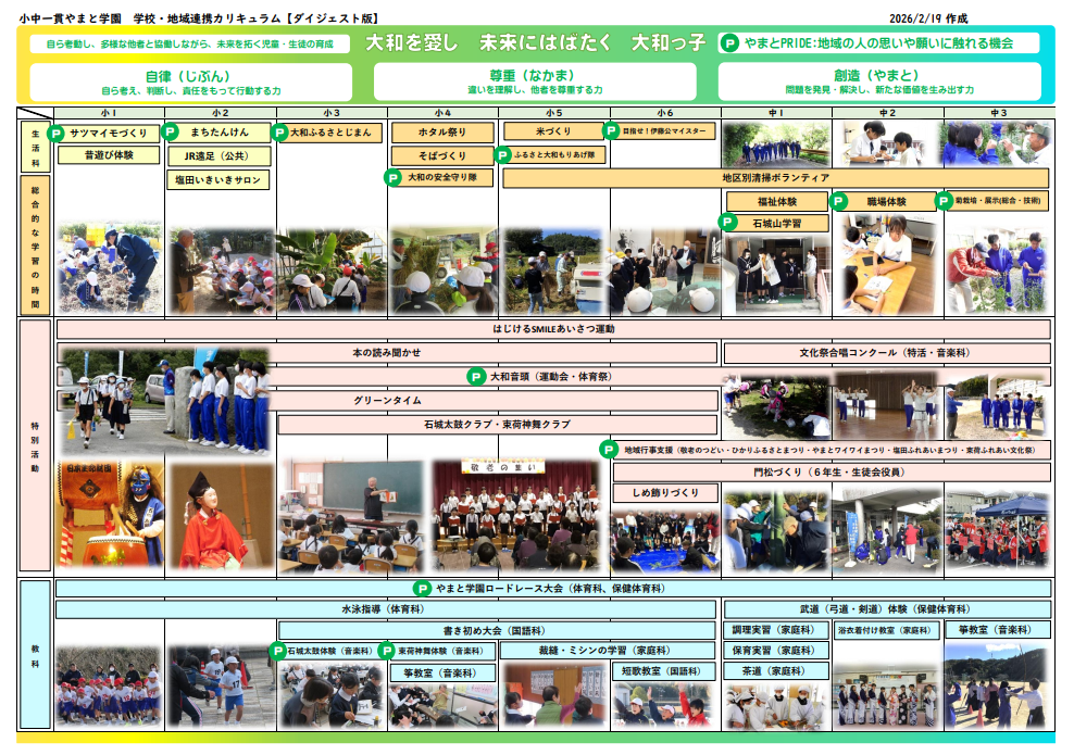 今後も、適宜、修正を加えながら「大和を愛し、未来にはばたく大和っ子」を育んでいきます。