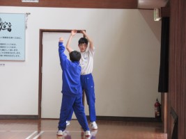 4月20日(月曜) 5時間目に合同体育があり、 「大和中学校の集団考動様式を知ろう/教えよう」のめあてのもと、 3年生が1年生に集団考動を教えました。 堂々とした3年生のお手本をまねしながら、 1年生が体操の仕方や集合の仕方などを知りました。 3年生は、2年前に先輩から教わったことを、 無事に次の代へ受け継ぐことが出来ました。 カテゴリー: 活動紹介